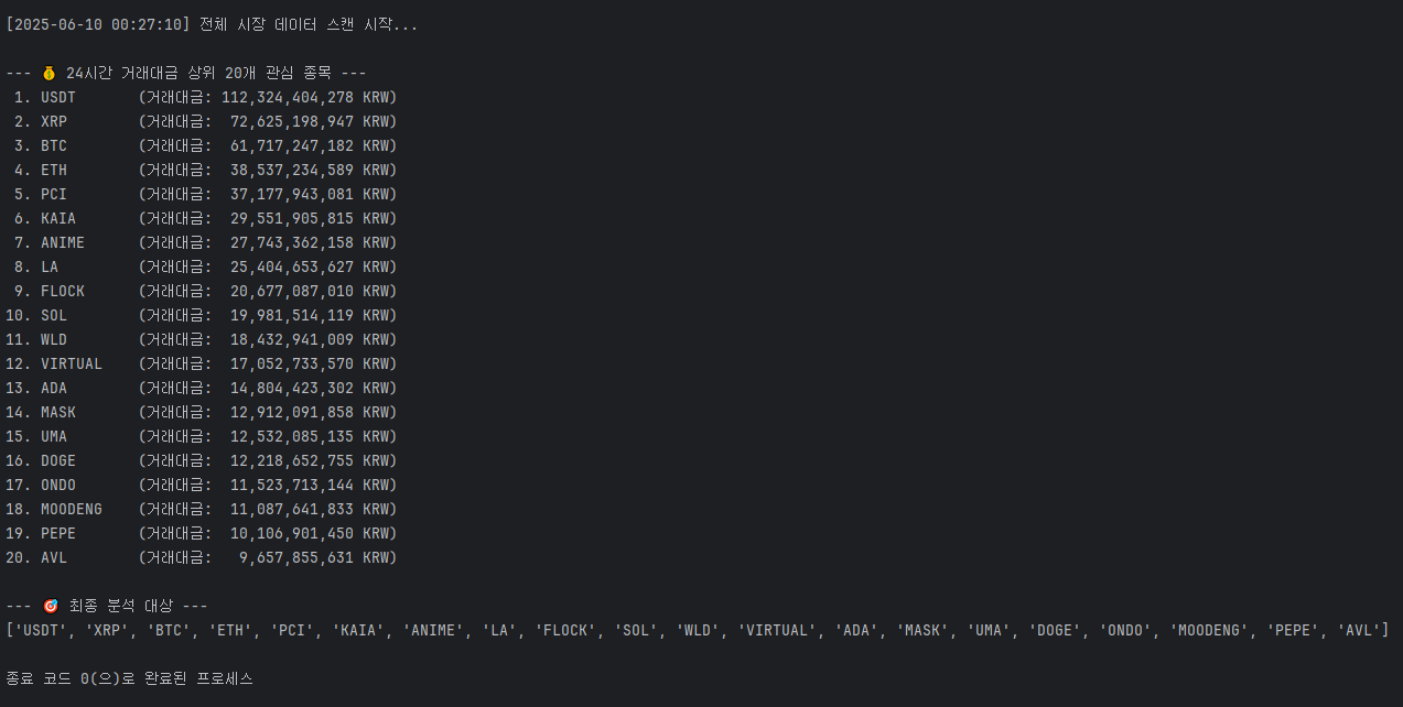 print("\n--- 💰 24시간 거래대금 상위 20개 관심 종목 ---")