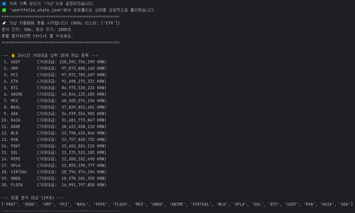print(f"🚀 가상 자동매매 봇을 시작합니다! (HODL 리스트: {hodl_list})")