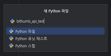 - 이름을 입력하고 Enter 시 '이름.py'파일이 생성된다.